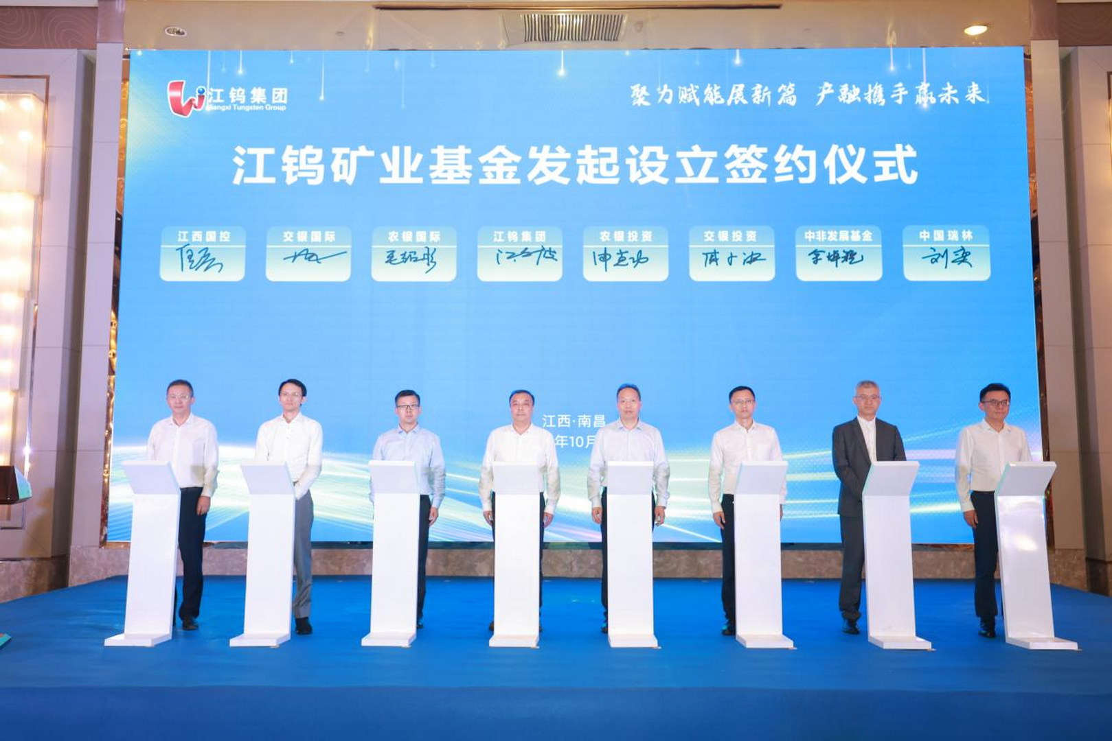 2025年10月15日,江鎢控股集團(tuán)與金融機(jī)構(gòu)戰(zhàn)略合作暨江鎢礦業(yè)基金設(shè)立簽約儀式在南昌隆重舉行。活動(dòng)緊扣“聚力賦能展新篇 產(chǎn)融攜手贏未來”的主題,同步開展簽約儀式與基金啟動(dòng)儀式。江西省國資委黨委書記、主任肖云出席儀式并見證簽約,中國瑞林黨委書記、董事長、總經(jīng)理吳潤華受邀參加,黨委委員、副總經(jīng)理劉奕陪同。