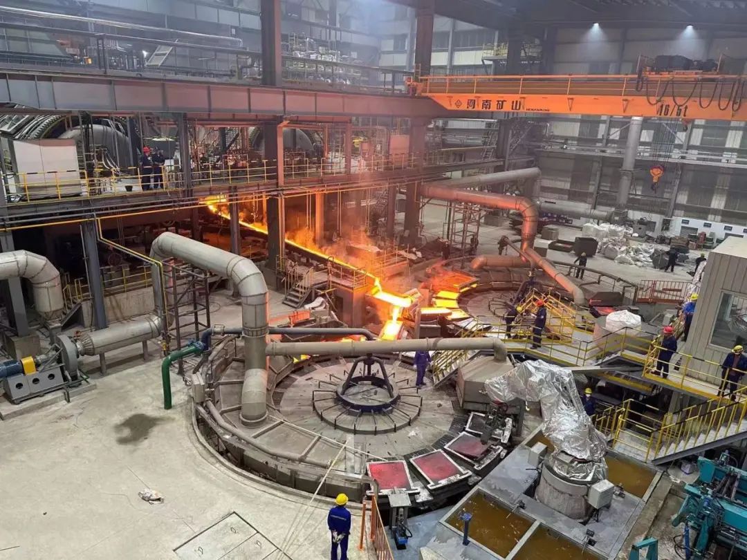 The project is an EPC project by China Nerin for the whole process of copper smelting. The members of the project team have been all united and overcome all kinds of difficulties; after nearly two and a half years of fierce battle, the moment of victory finally comes. The project adopts the process of "side-blown smelting + multi-lance top-blown converting+ rotary anode furnace refining + permanent stainless steel cathode electrolysis", which is at the advanced level of copper smelting in the world, especially for its significant edges in environmental protection, automation and low production costs, etc. The top-blown furnace lances are independently developed and supplied by China Nerin.