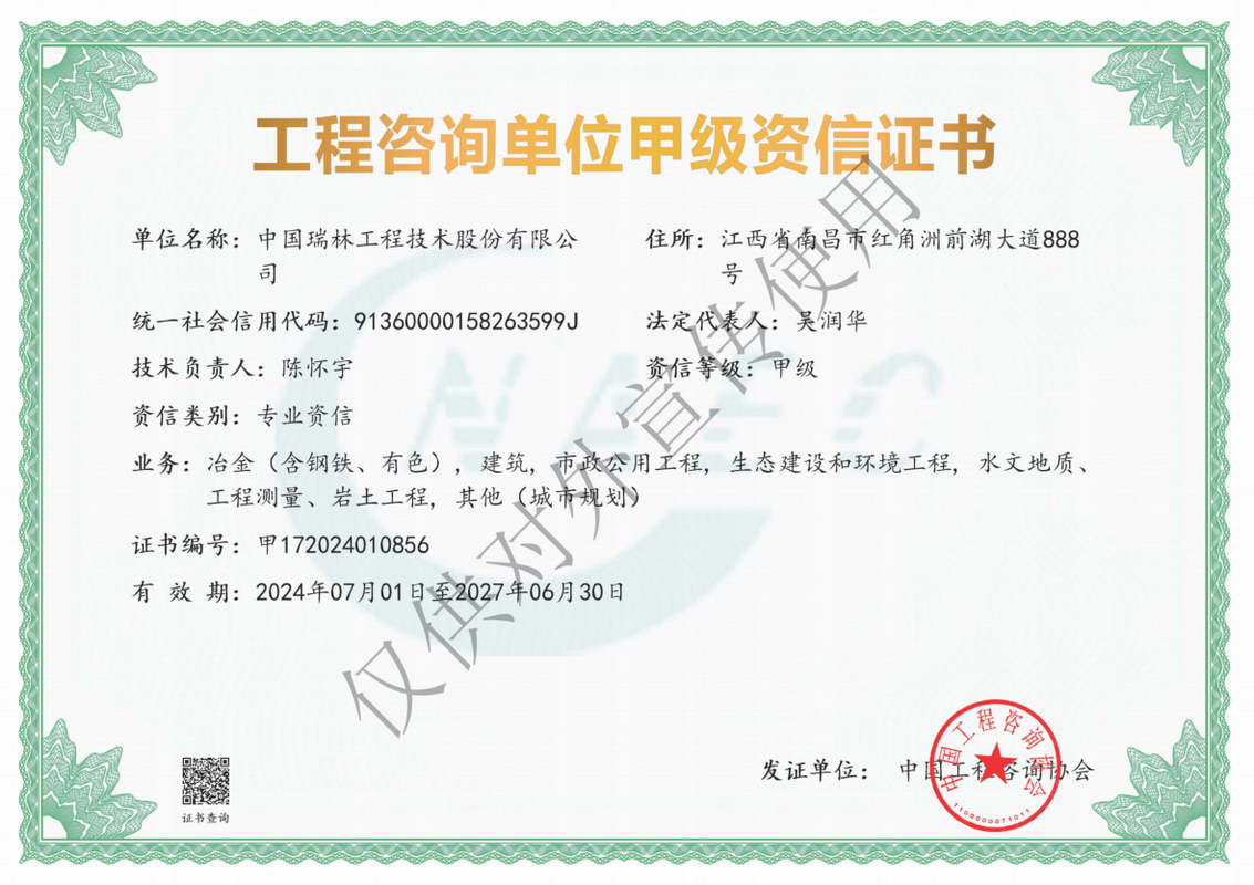 Recently, the China Engineering Consulting Association announced the first batch of 2024 engineering consulting entities meeting the stringent Grade A credit evaluation criteria. China Nerin earned the Grade A Comprehensive Credit Certificate for Engineering Consulting, making it the one recipient in China's nonferrous engineering consulting industry. This milestone solidifies China Nerin's status as a dual comprehensive Grade A enterprise, excelling in both "Engineering Consulting" and "Engineering Supervision".